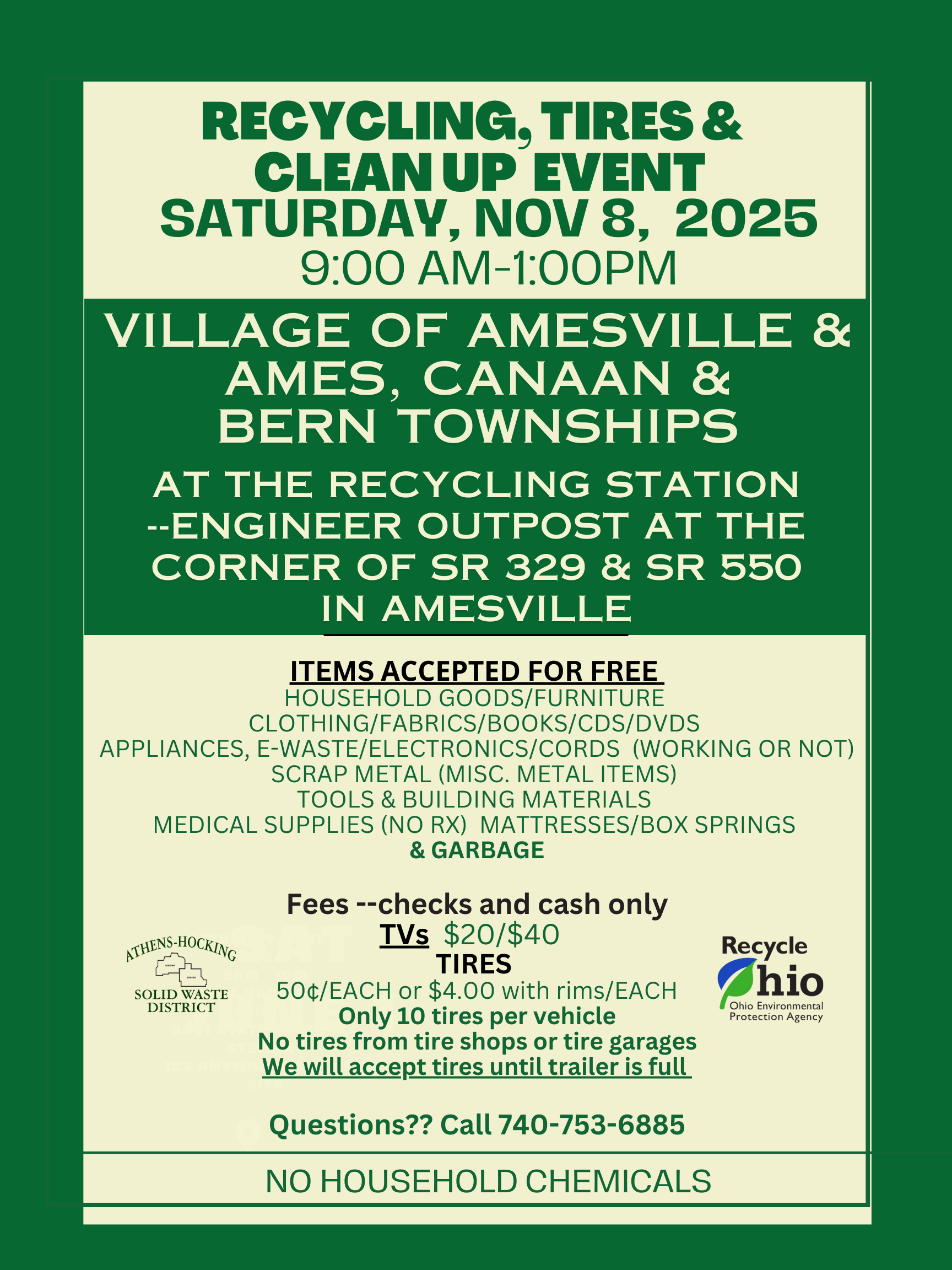 Athens-Hocking Solid Waste District Policy Committee Meetings will be scheduled for 2025. Location to be determined.